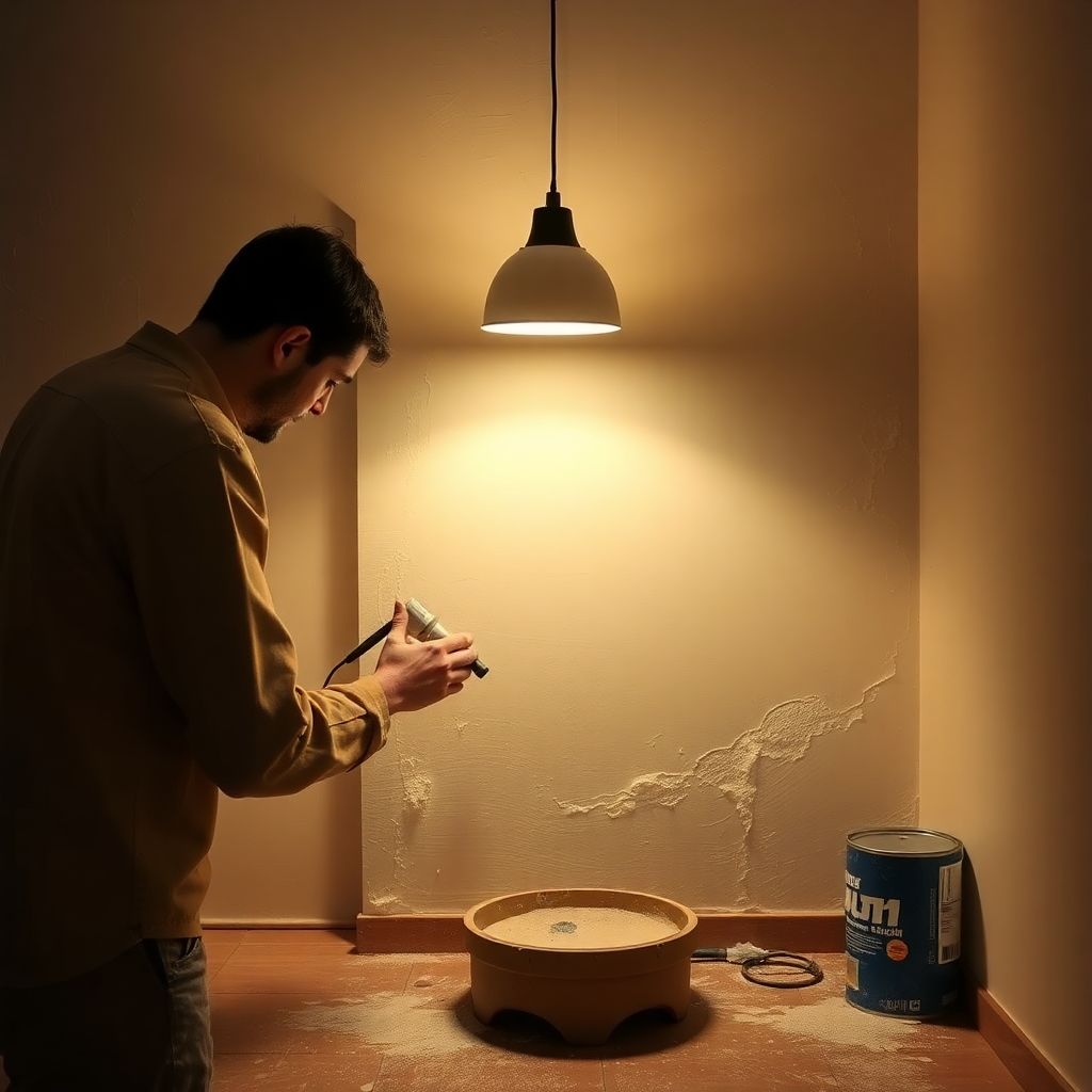 Первый шаг в технологии шпаклевки под лампочку — тщательная подготовка основания. Поверхность стен необходимо очистить от пыли, остатков обоев, краски, жира и любых загрязнений. Если на стенах имеются трещины, сколы или выступы, их нужно устранить заранее. Также важно проверить стены на наличие плесени или грибка — такие участки обрабатываются антисептическими составами. Перед тем как шпаклевать стены идеально, убедитесь, что основание ровное, прочное и сухое — это существенно повлияет на конечный результат.